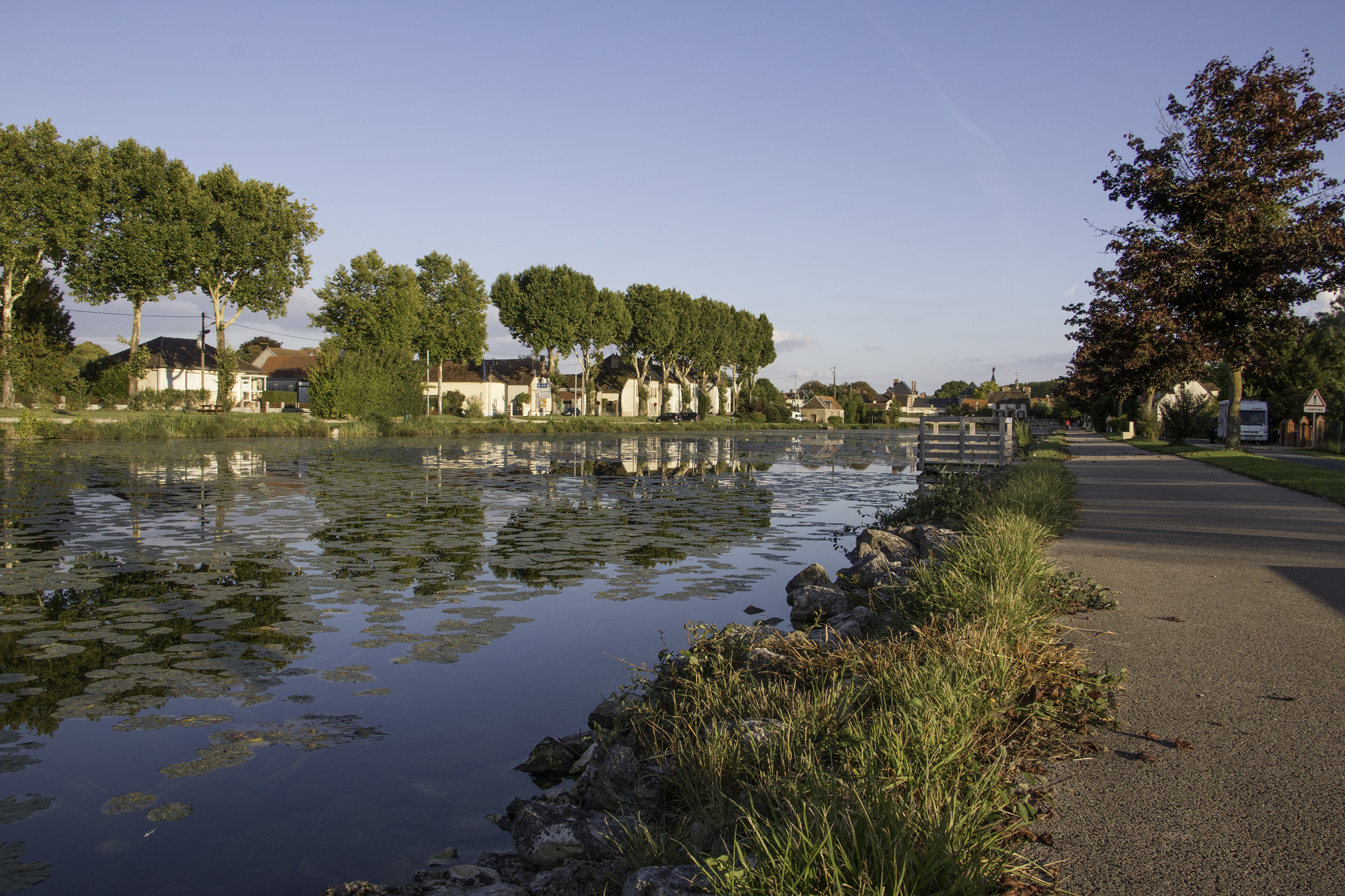We arrived at the camp municipal at around 5PM to find the barriers down and reception shut. Reception was due to open at six but one of the site regulars opened the barrier for us so that we could find a pitch. The site is in a beautiful location, situated between the Seine and the canal. Facilities are a little basic as you might expect from a municipal site but they are perfectly adequate for an overnight stay and at 12.30 Euros seemed reasonable value.